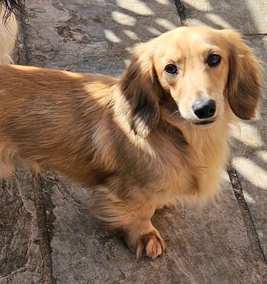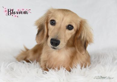 Blossom is a beautfiful girl and loves absolutely everyone and anyone. She is a Shaded Cream Miniature Longhaired Dachshund. She is super funny and gives us daily bum wiggles.